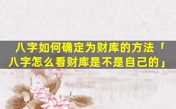 确定八字 🐺 财库的方法 🐞