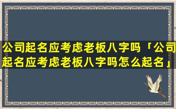 是,公司起名应考 🦄 虑 🦍 老板八字的原因: