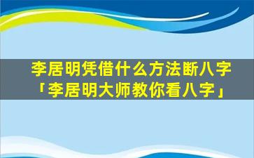 李居明大师的 🐞 八字教学注重以下 🕷 几点 🐅 :