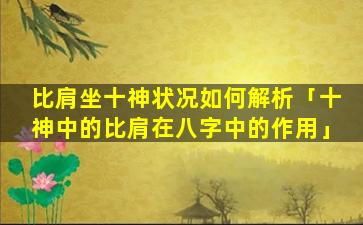 比肩坐地 🦆 支的吉 🍀 凶