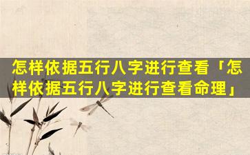 依据五行八 🐕 字查看财运的 🐬 步骤