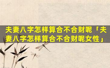 夫妻八字合不合财 🌸 的判断 🐘 方法: