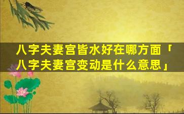 八字夫妻宫 🌷 皆 🐬 水优点 🌼 :
