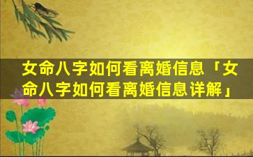 女命八字 🐵 看离婚信息详解 🍁