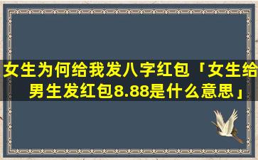 在 🦄 不同的文化和语境下,“女生给男 🐡 生发红包 8.88”可 🕊 能有多种含义: