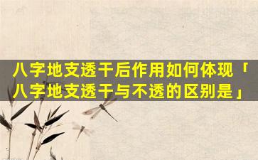 地支透干还可以应事吉凶。当流年大运作用到透干的地支时,会。引,发,命主相应属性的事项例如透出 🕷 正财地支主财运亨通透出;官,星地支。主事业有成