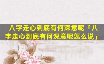 “八字”指生辰八字,由出生年月日时推算得 🐅 出 🕷 。而“走”心则有两种解释 💮 :