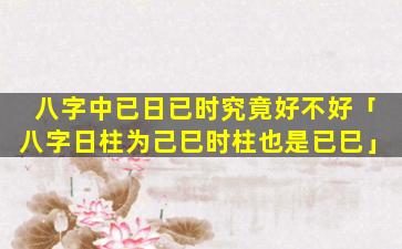 八字中 🍁 己日己 🦅 时的 🐯 好坏