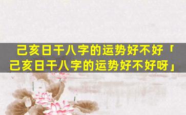己亥日柱八字运势分 🦉 析