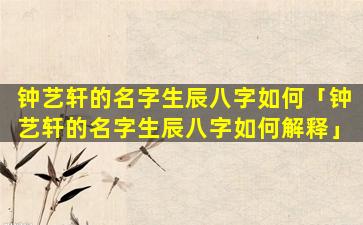 姓名总评:根据五行相生相克的原则,钟,艺轩的名字五行相克较明显 🐎 金克木形成金木相克的“局”面。这,可。能会带来一些不稳定性影响性格和运势 🕊 的发展 🐧