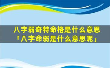 八字 🌼 弱奇 🌿 特命格