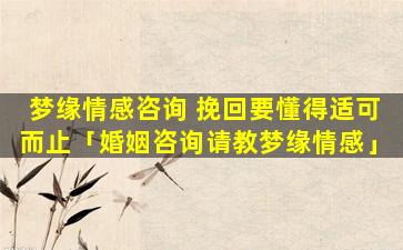 梦缘情感咨询:挽回要懂得适可 🐴 而止