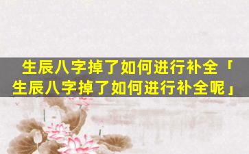 生辰 🌹 八字 🐺 丢失如何补全 🐬 ?