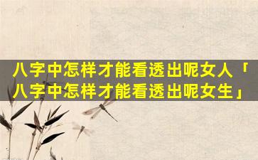 八字中 🐠 看 🐵 女生出轨特 🐧 征: