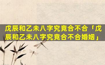 戊辰和乙 🐯 未八字的合婚结果是 🌴 :