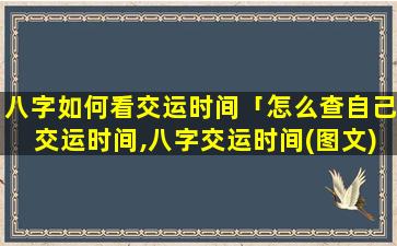 八 🕷 字命理中,交,运是指大運流年代表人生不 🐳 同阶段的運勢變化 🌷 。以下是如何通過八字查看交运时间:
