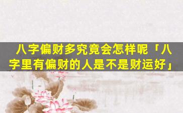八 🐯 字偏财多的 🕷 人建 🐼 议: