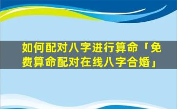 八字算命配对,指的是根据两个 🐞 人的生辰八字来判断他们 🐛 的婚姻是否相 🦢 配。通,过分析双方的八字可以看出双方的性格、五,行。属性以及婚姻运势等信息从而判断他们是否适合结婚