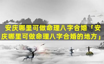 安 🐱 庆可以做命理八字合婚的地方 🌷 :