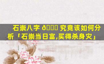 综合来看,石崇的八字是一个偏官旺、印、比,强、食、神生的格局主聪明权势财运和享受。但,同,时,日。支正印坐空亡也暗示着他一生坎坷多变最终悲惨 💮 收场