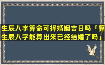 生辰八 💐 字算命可择婚姻吉日吗?