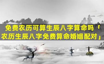 农历生辰八字免费算 🌿 命 🐕 婚姻配对