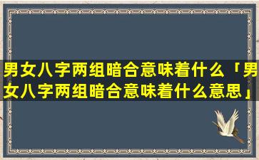 在八字命理中,"暗"合,是指八字中两 🐵 个干支之间的相合关系但没有通过明合的形式表现出来。如,果男女双方的八 🪴 字中有 🐅 两组暗合则可能表示: