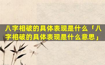 八字相破是指八字中日柱天干和月柱地支相冲克相破。有 🐅 以下几种具体 💐 表现: