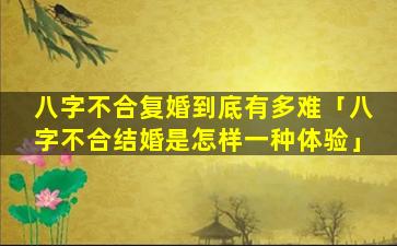 八字 🐒 不合复婚 🪴 的难度 🐞