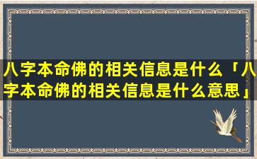 相关信息与八字本命佛相关的其他信息 🐺 包括: