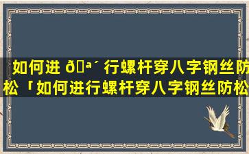 螺杆穿 🌿 八字钢丝防 🦈 松方法