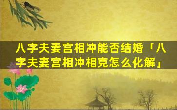 八字夫 🐬 妻宫相冲相克的化解方 🐎 法