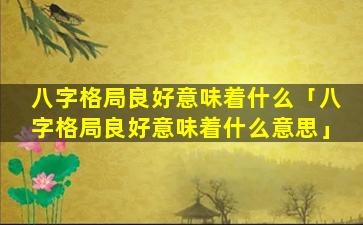 八 🐒 字格局良好所暗示的含义 🐧 :