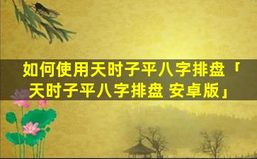 简介天时子平八字排盘安卓版是一 🌷 款专业的八字排盘软件,可以根据出生日期时、间,和地点等信息准 🐧 确排算八字 🐒 命盘并提供详尽的运势分析。