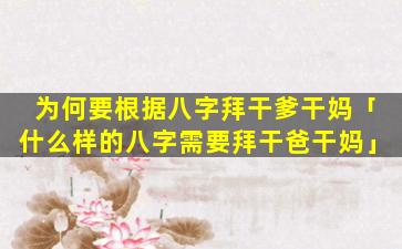 根据八 🕸 字拜干爹干妈的危 🌸 害