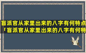 盲派官从家 ☘ 里出 🐠 来 🐯 的八字特点