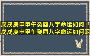 戊戍庚申甲午癸酉 🦍 八字 ☘ 命运分析: