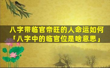 八字 💐 带 🦆 临官帝旺的人命运如何 🐎