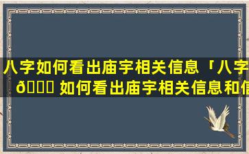 八 🍀 字中可以通過以下特徵看出 🌳 廟宇相關信息和機緣: