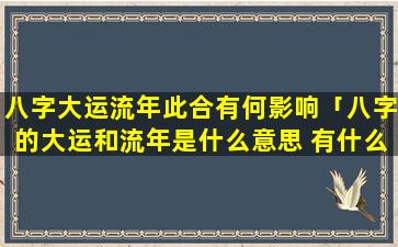 八字合大运:影响一生命运,吉凶取 🐈 决于合局性质和八字 🦊 格局的配合。
