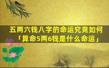 “5两6钱”的说法源 🦁 自中国传统命理学中八字的重量概念,并非算命术语。