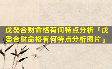 戊 🐧 癸合财 🐡 命 🐘 格特点