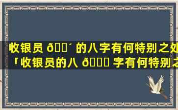 收银员的八字并非天生特别,但,由于其工作性质可能会对某些命格产 🐈 生特定影响: