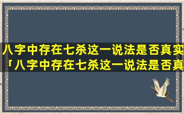 八 🦆 字 🦢 中存在七杀的说法是真实的。
