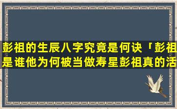 “彭祖的生辰八字究竟是何诀”这一说法并不 🌺 准确,因为没有确切的证据或历史记载表明彭祖的 🦄 生辰八字是什么彭祖是。中,国,神。话中的人物传说他活了八百多岁但他的实际生卒日期和具体生辰八字已不可考