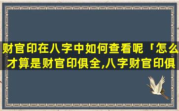 “财官印”指八字命局中同时具备财星 🌴 官星、和印星,且三者旺盛。