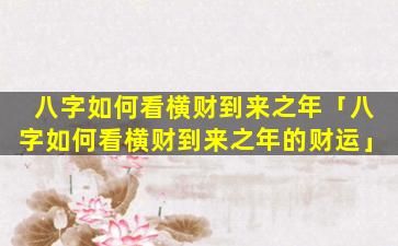 注意:以上只是八字看横财到来之年财运的部分方法,具 🐘 体还要结合命主的八字结构、大运、流年等因素综合判断。