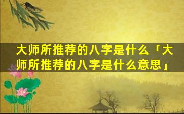 根据您提供的上下文信息,我没有收到有关大师推荐的八字的任何 🌳 信息。因,此我 🐛 。无法回答您的问题