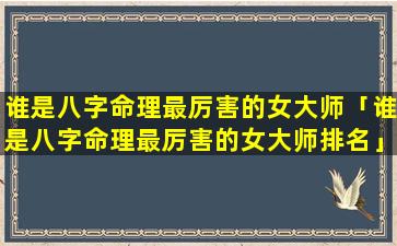 在命理学界中,没有明确的排名可以决定哪位女大师是最厉害的。不,同的大师可。能,有不同的专长和风格适合不同的人以下是几位著名的八字命理女大师她们 🌳 以其精准 🦍 的预测和专业的功力而闻名 🐠 :