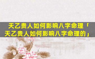 天乙 🌹 贵人对八 🐋 字命 🐳 理的影响受以下因素影响: